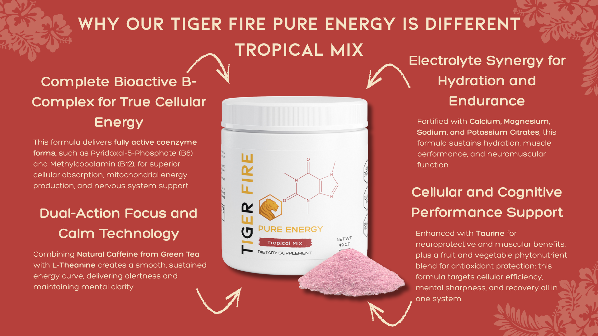 - B-vitamins and electrolytes work together to support cellular energy production, hydration, and sustained performance throughout the day.