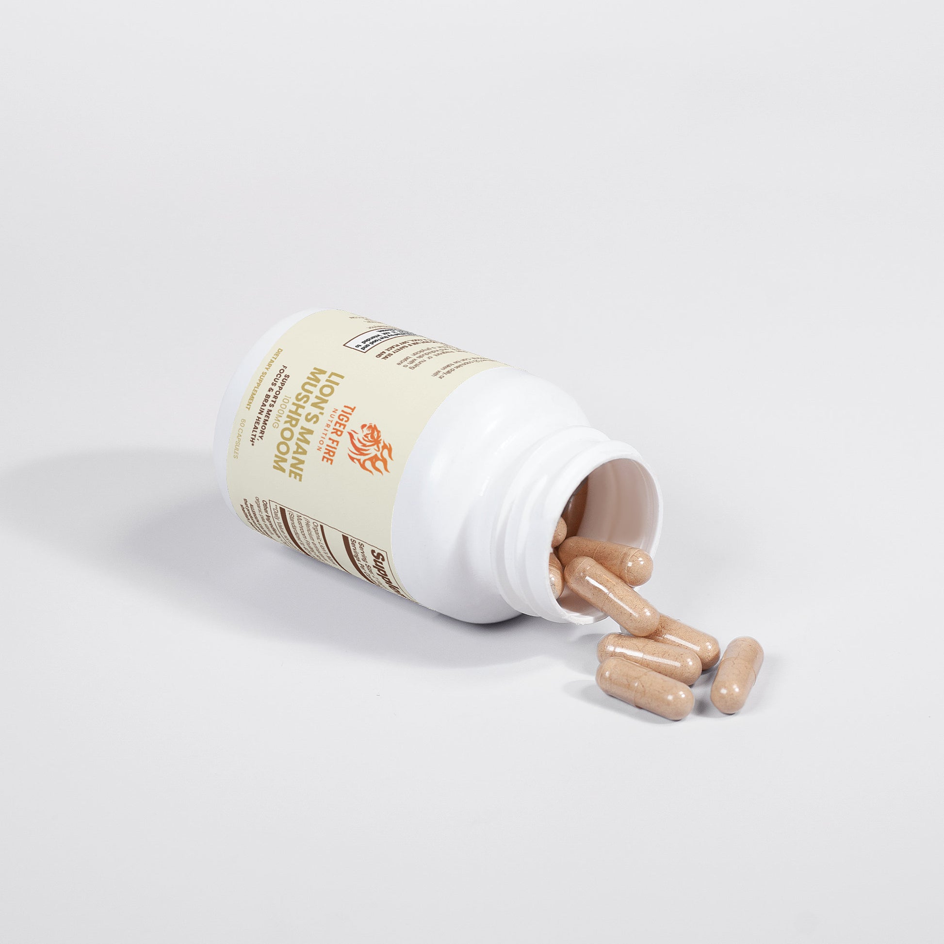 Ingredients: Organic Lion’s Mane (Hericum erinaceus) Mushroom Fruiting Body & Mycelium Powder (Standardized to 40% polysaccharides [400mg]), Organic capsule (pullulan, water), organic pea starch.
